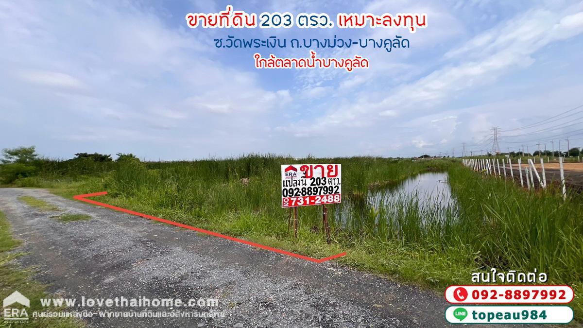 ขายที่ดิน ซอยวัดพระเงิน ถนนบางม่วง-บางคูลัด พื้นที่ 203 ตรว. เหมาะลงทุน ใกล้ตลาดน้ำบางคูลัด