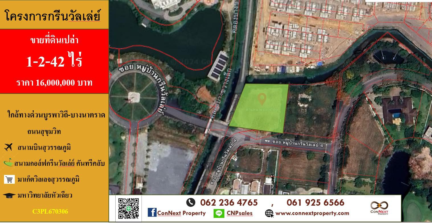 ที่ดินเปล่า ในหมู่บ้านกรีนวัลเล่ย์ เนื้อที่ 1-2-42 ไร่ ใกล้ทางด่วนบูรพาวิถี-บางนาตราด