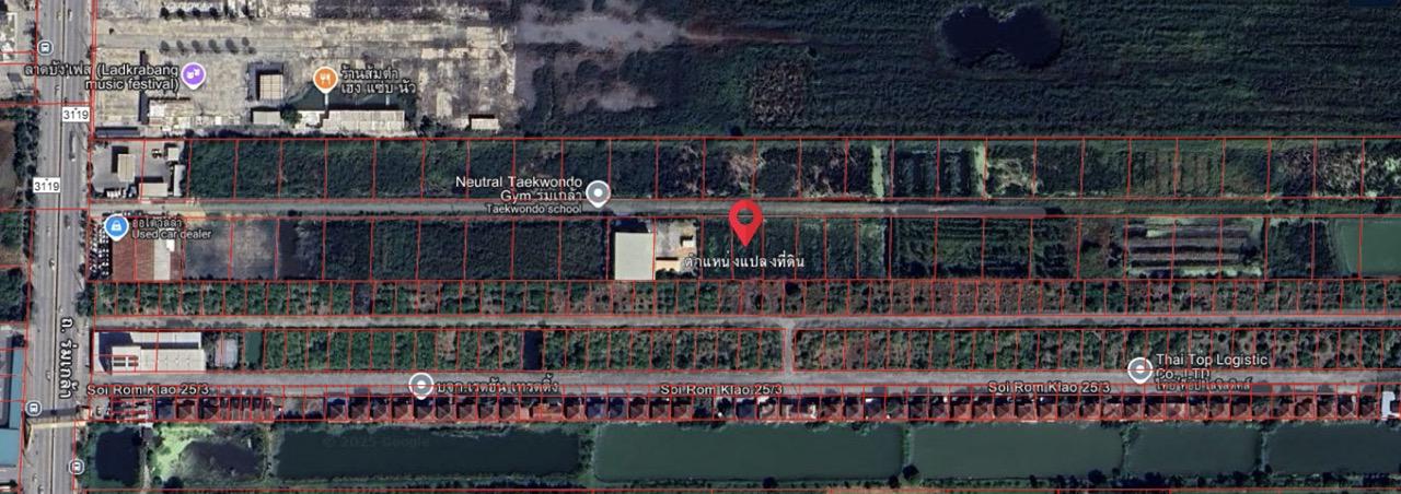 - ที่ดินเปล่า ทำเลดี ขนาด 944 ตร.วา หน้ากว้าง 105 เมตร ลึก 37 เมตร (ยังไม่ได้ถม)