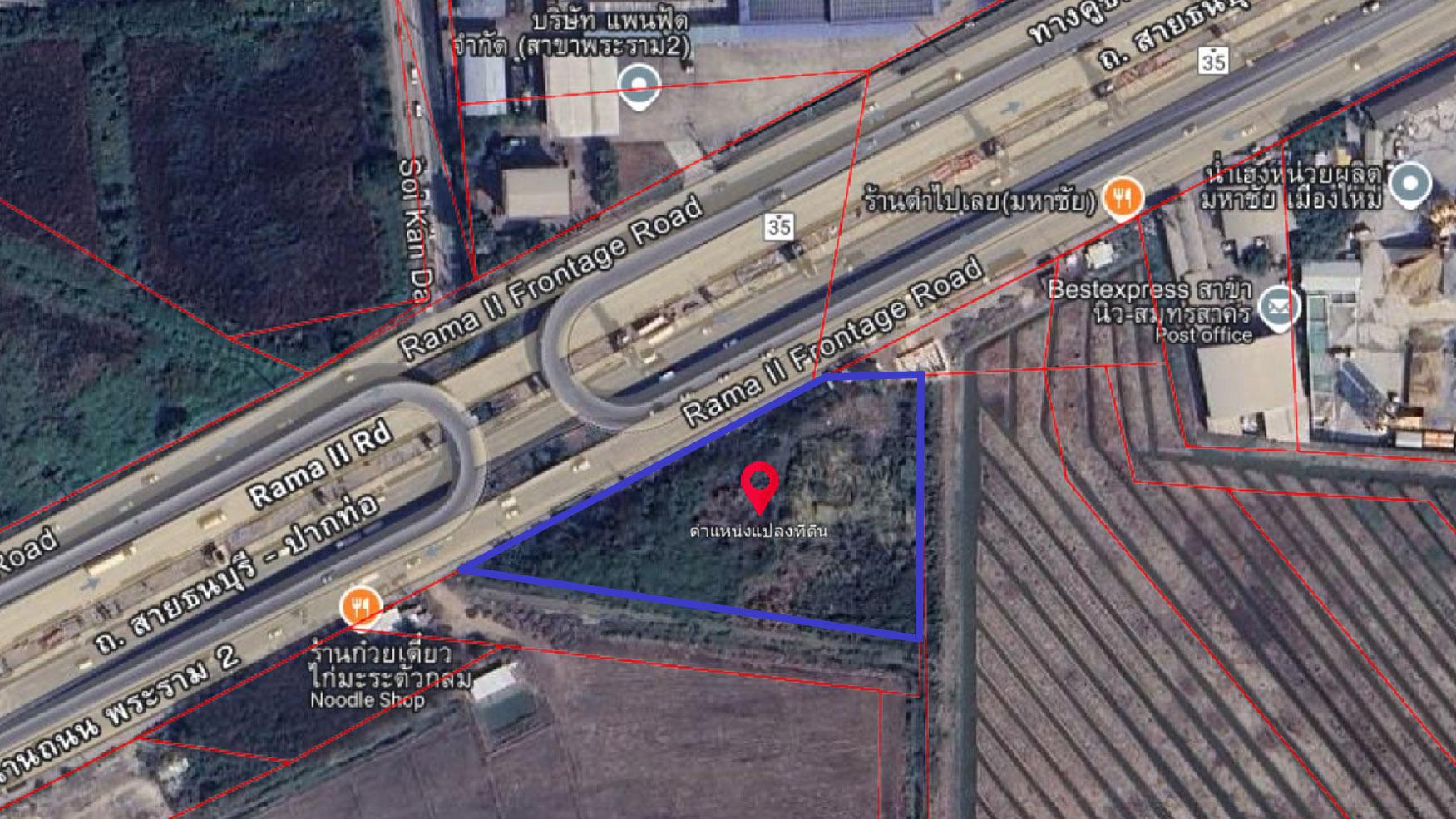 ขายที่ดิน สุมทรสาคร | เนื้อที่ 5 ไร่ | ติดถนนพระราม 2 | หน้ากว้าง 131 เมตร | ใกล้เซ็นทรัลมหาชัย