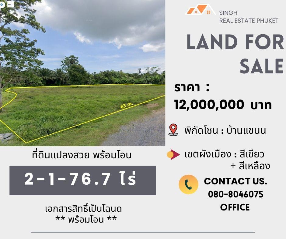 ** LAND FOR SALE ** ที่ดินเปล่า 2-1-76.7 ไร่ ( บ้านแขนน - ใกล้ ร.ร.นานาชาติ UWC )