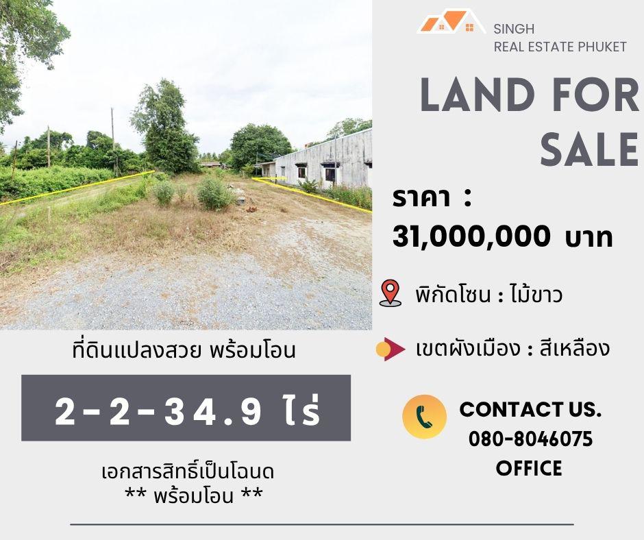 - ขนาดที่ดิน 2-2-34.9 ไร่ ( ซอยไม้ขาว 5 )