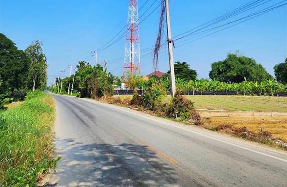 ที่ดินติดถนนลาดยาง หน้ากว้างด้านติดถนนประมาณ 67 เมตร ยาวประมาณ 210 เมตร ด้านหลังกว้างประมาณ 40 เมตร ปัจจุบันปลูกผัก ระดับของที่ดินต่ำกว่าถนนประมาณ 50 ซม.