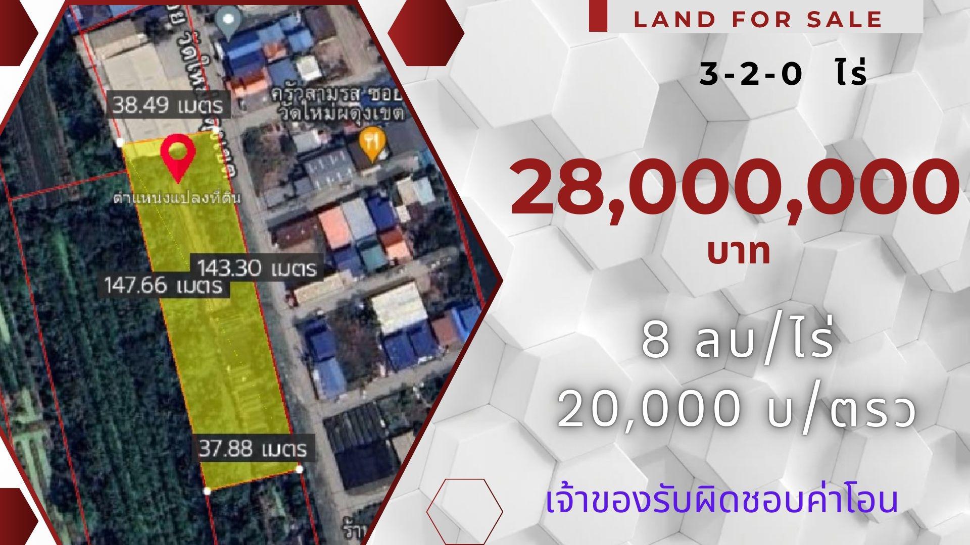 ขาย 28,000,000 บาท หรือ 8 ล้านบาท/ไร่ หรือ 20,000 บาท/ตรว