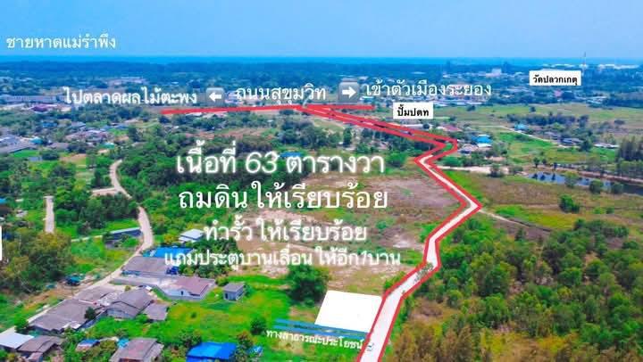 ขายที่ดินเปล่าไกล้ทะเลหาดแม่รำพึงจ.ระยองเนื้อที่63ตรว.ล้อมรั้วไห้พร้อม