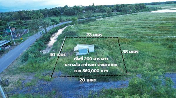 ขายที่ดิน 200 ตร.ว. ต.บางอ้อ มีโฉนด ขาย 560,000 บาทพร้อมโอน ห่างถนนชุมชน 10 เมตร