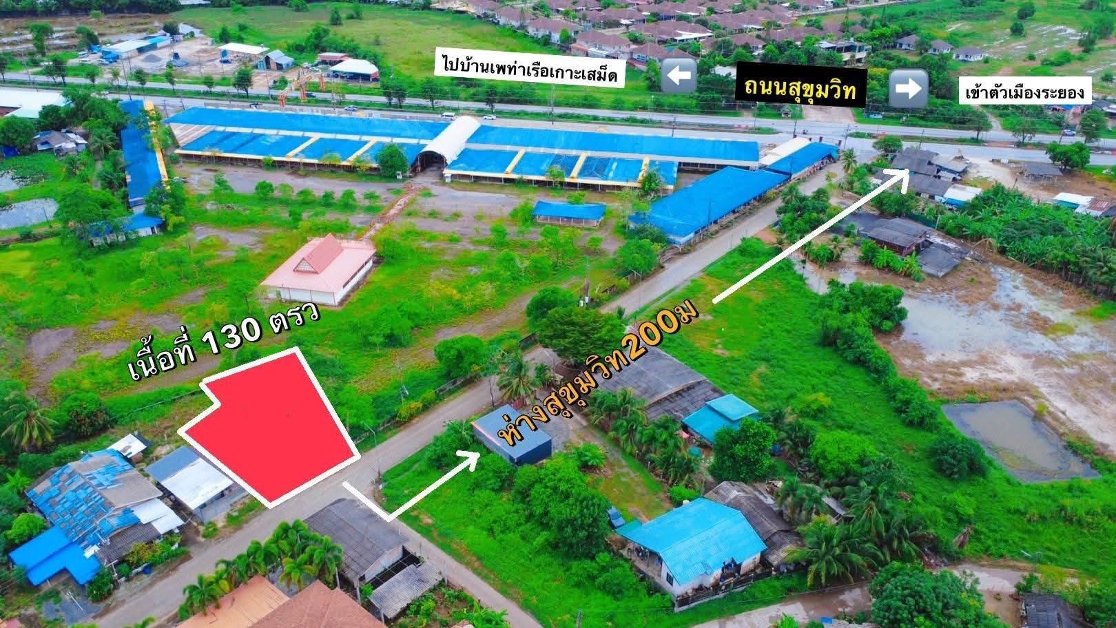 ขายที่ดินเปล่าไกล้ถนนสุขุมวิทข้ามไปเกาะเสม็ดจ.ระยองเนื้อที่130ตรว.