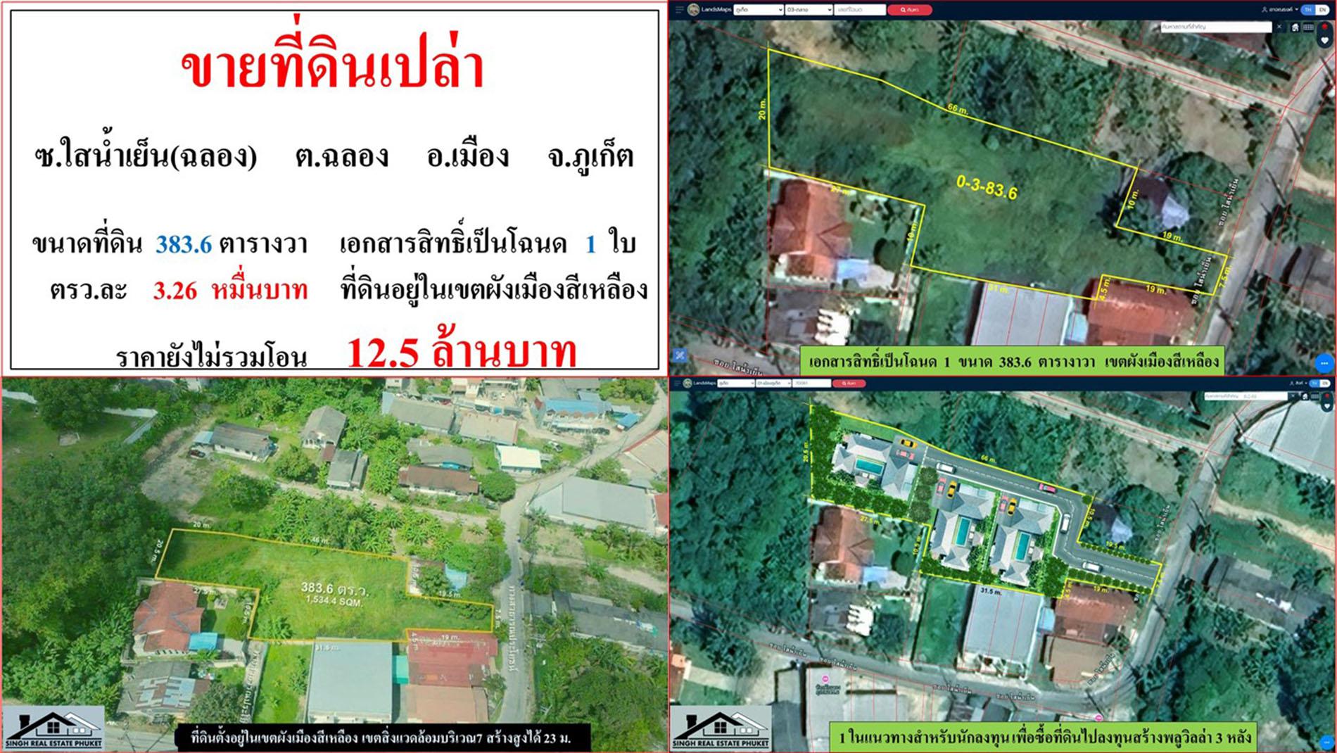 ขายที่ดินเปล่า ขนาด 383.6 ตรว. ซ.ใสน้ำเย็น(ฉลอง) ต.ฉลอง อ.เมือง ภูเก็ต