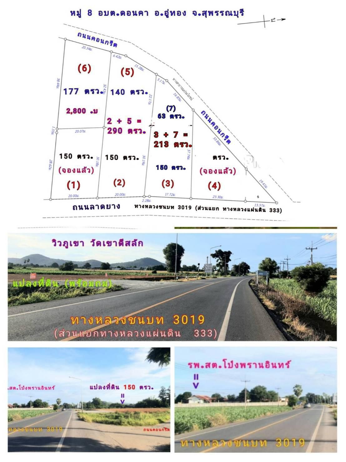 (โฉนด) แบ่ง 213,290 ตรว.ๆละ 3,100 บ. พร้อมถม (ติดทางหลวงชนบท 3019 กม.6) ส่วนแยก ทล.333 (ตรงข้าม รพ.สต.โป่งพรานอินทร์) ม.8 ต.ดอนคา อ.อู่ทอง สุพรรณบุุรี