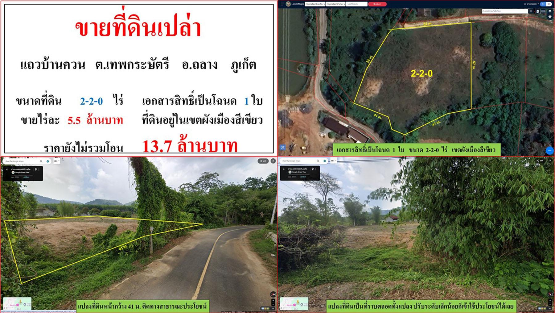 ขายที่ดินเปล่า ขนาด 2-2-0 ไร่ แถวบ้านควน ต.เทพกระษัตรี อ.ถลาง ภูเก็ต