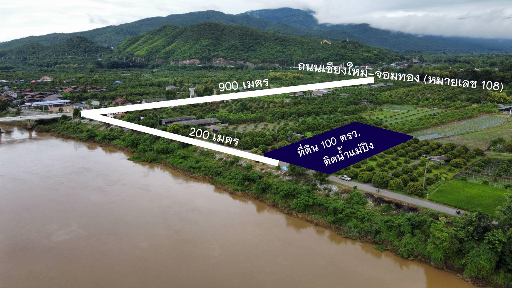 ที่ดินติดแม่น้ำปิง 100 ตรว. (หน้าติดน้ำ หลังติดภูเขา อากาศดี)