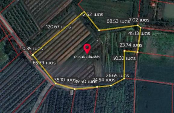 ที่ดินประมาณ 10 ไร่ หน้ากว้างติดถนนทางเข้าที่ดิน 140 เมตร ลึกประมาณ 120 เมตร
