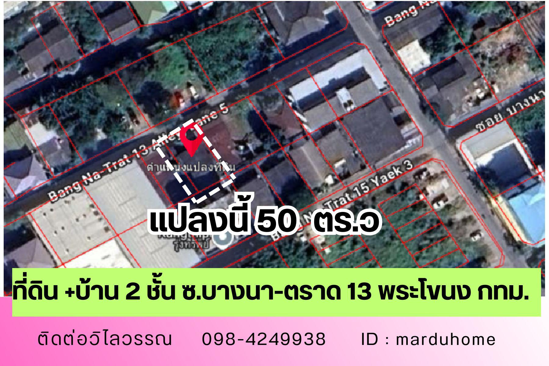 ขายที่ดิน 50 ตร.วา พร้อมบ้าน2ชั้นทำเลทอง บางนา-ตราด ซ.13 ใกล้เซ็นทรัล บางนา