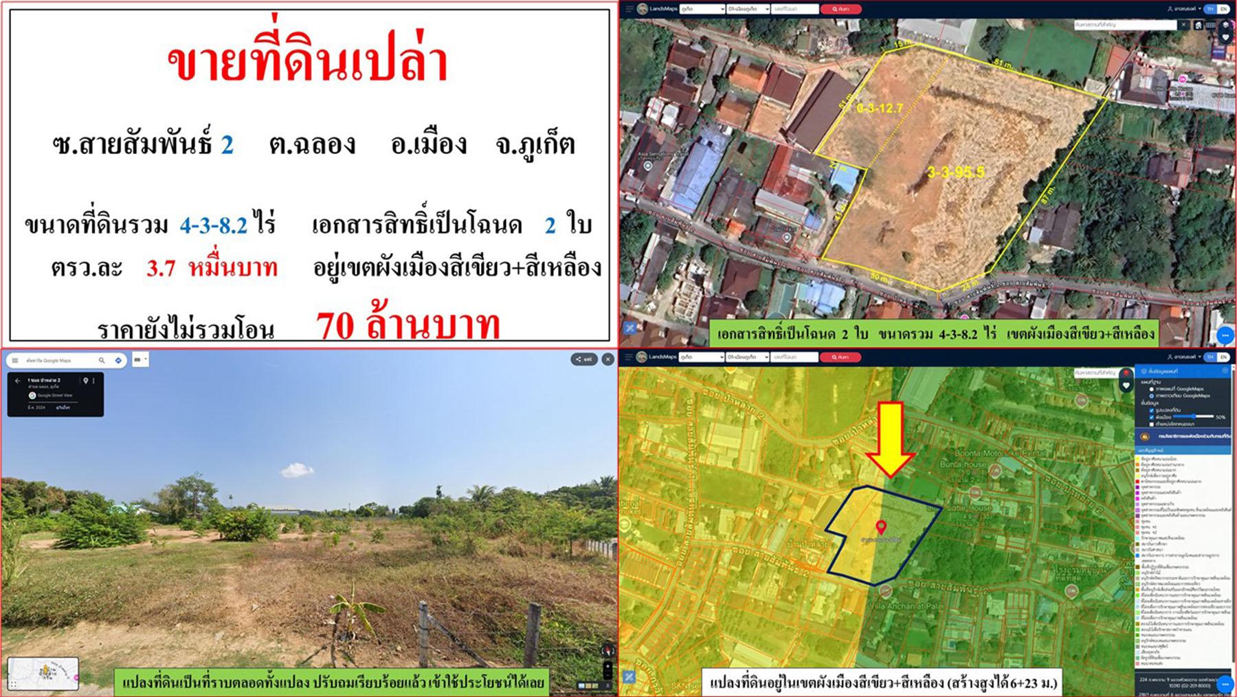 ขายที่ดินเปล่า ขนาด 4-3-8.2 ไร่ ซ.สายสัมพันธ์ 2 ต.ฉลอง อ.เมือง ภูเก็ต