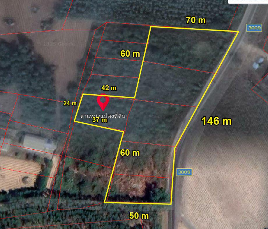หน้ากว้างติดถนนเส้น3009 146 เมตร X ยาว 147 เมตร