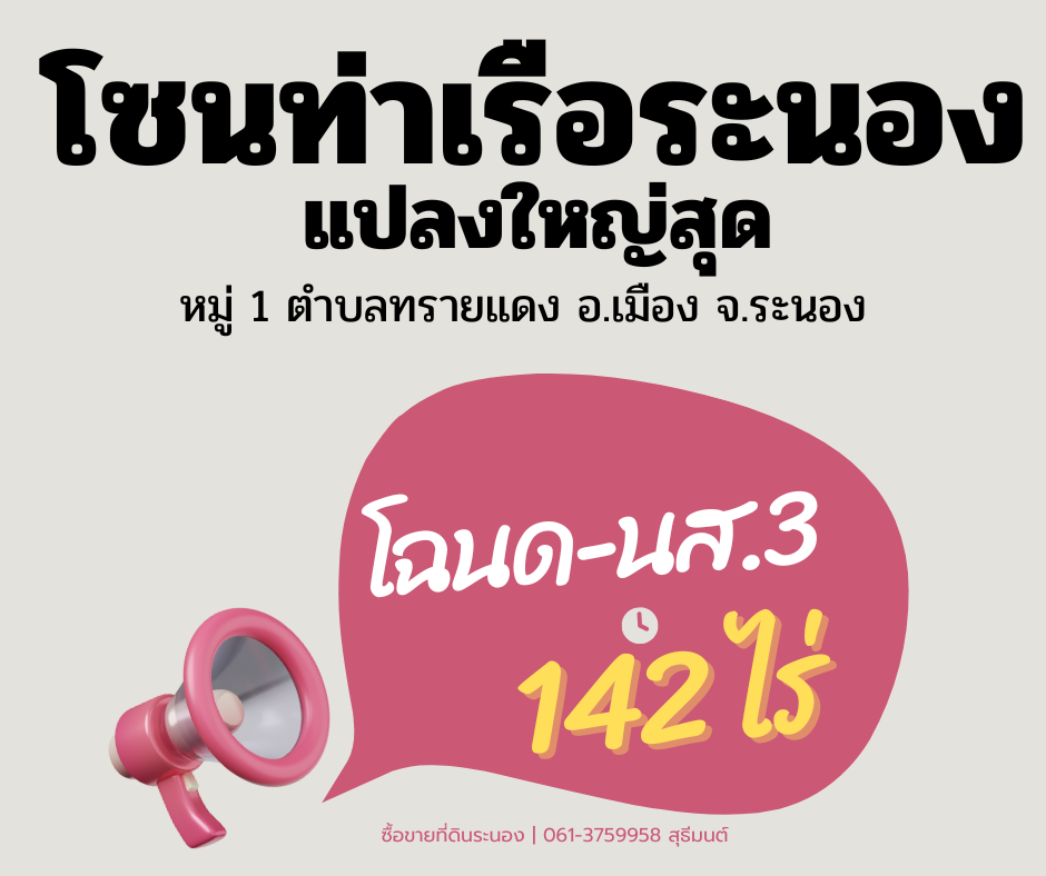 โฉนดและนส.3 เนื้อที่142ไร่ ติดถนนติดทะเล มีแปลงเดียว สำหรับทำธุรกิจขนาดใหญ่