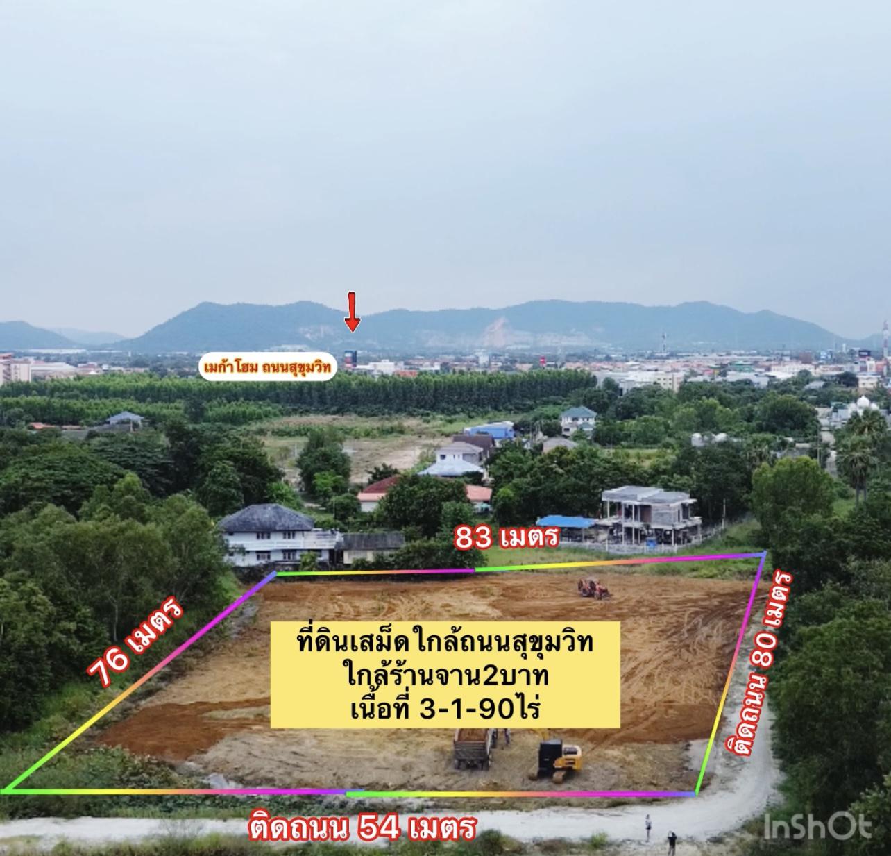 ที่ดินถมแล้วใกล้ถนนสุขุมวิทใกล้ร้านจาน2บาท 3-1-90ไร่ ไร่ละ 8ล้าน ต.เสม็ด อ.เมือง จ.ชลบุรี