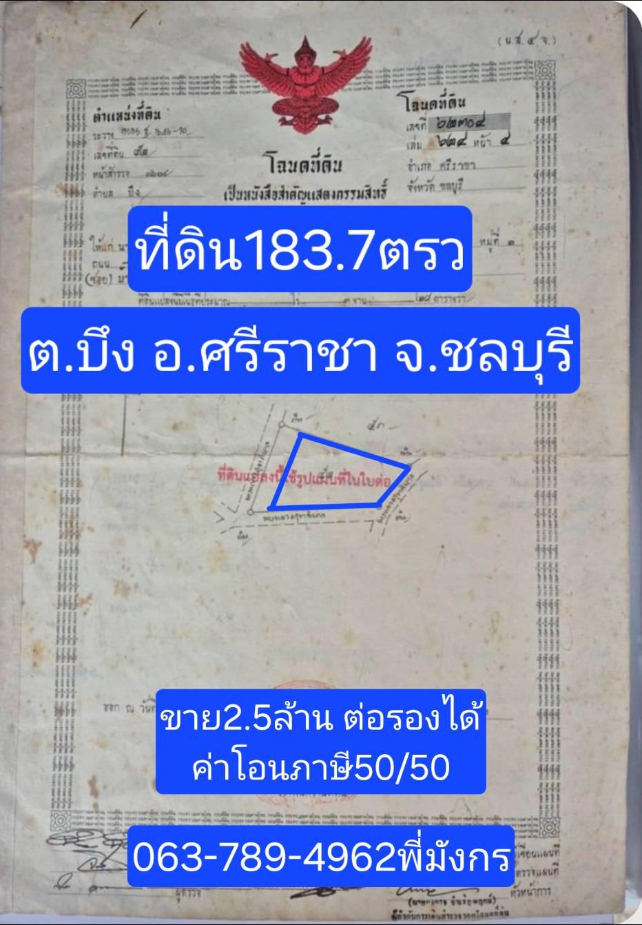 ที่ดิน183.7 ตรว ต.บึง อ.ศรีราชา จ.ชลบุรี