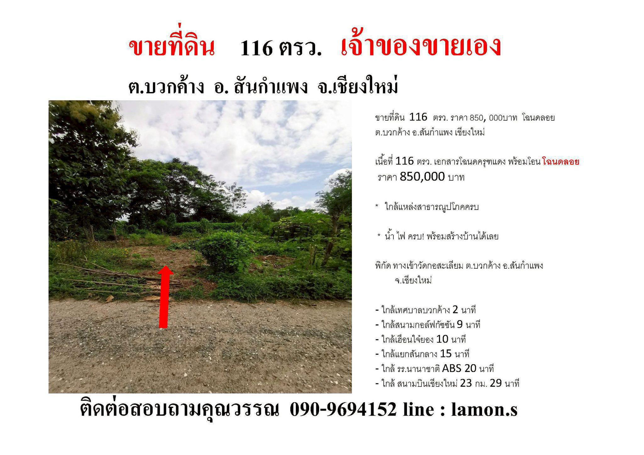ขายด่วน ที่ดินโฉนดลอย 116 ตร.ว. สันกำแพง เชียงใหม่ ใกล้วัดกอสะเลียม เจ้าของขายเอง ราคาถูกมาก