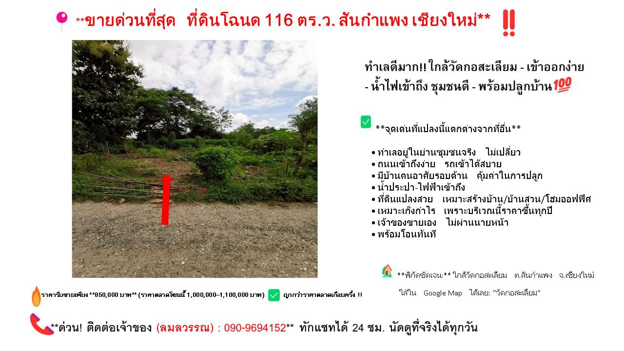 **ขายด่วนที่สุด️ ที่ดินโฉนด 116 ตร.ว. สันกำแพง เชียงใหม่**