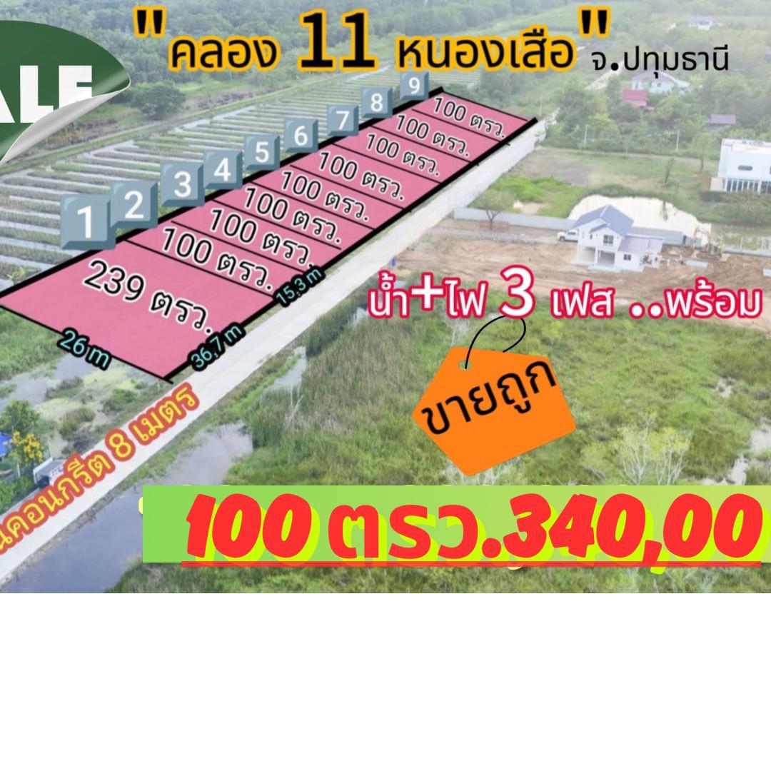 ขายที่ดินถูก ติดคอนกรีต8 เมตรทุกแปลงคลอง 11 หนองเสือ