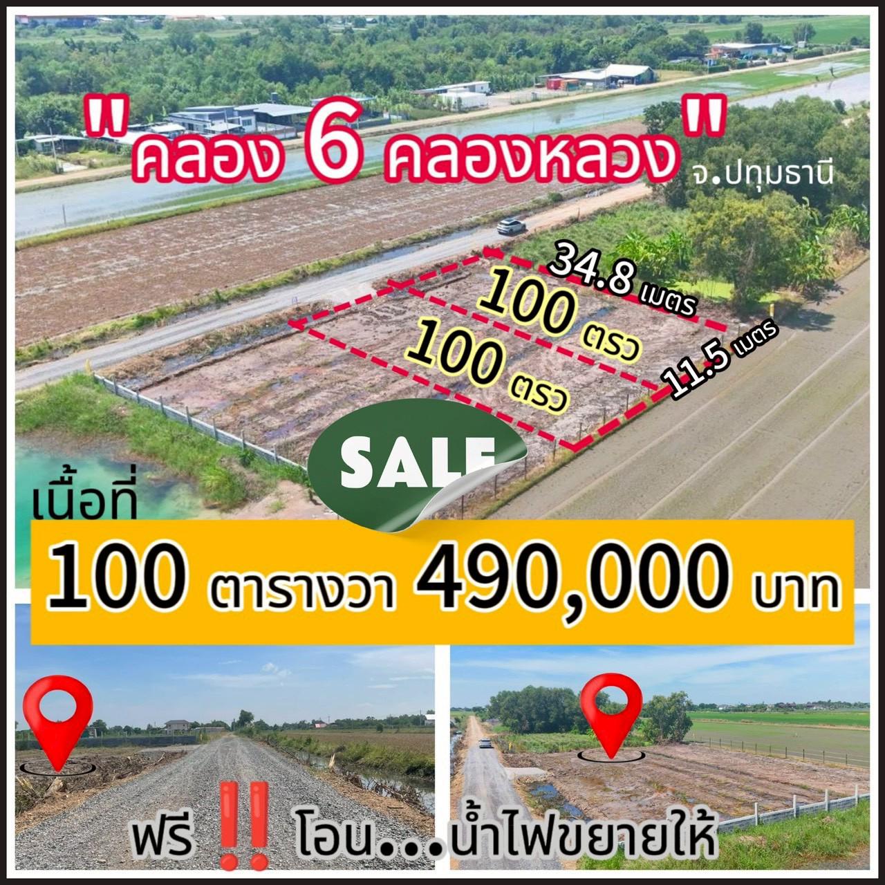 ข️ายที่ดินคลอง 6 คลองหลวง ติดถนสาธารณะ ไม่ไกลจากมอเตอร์เวย์