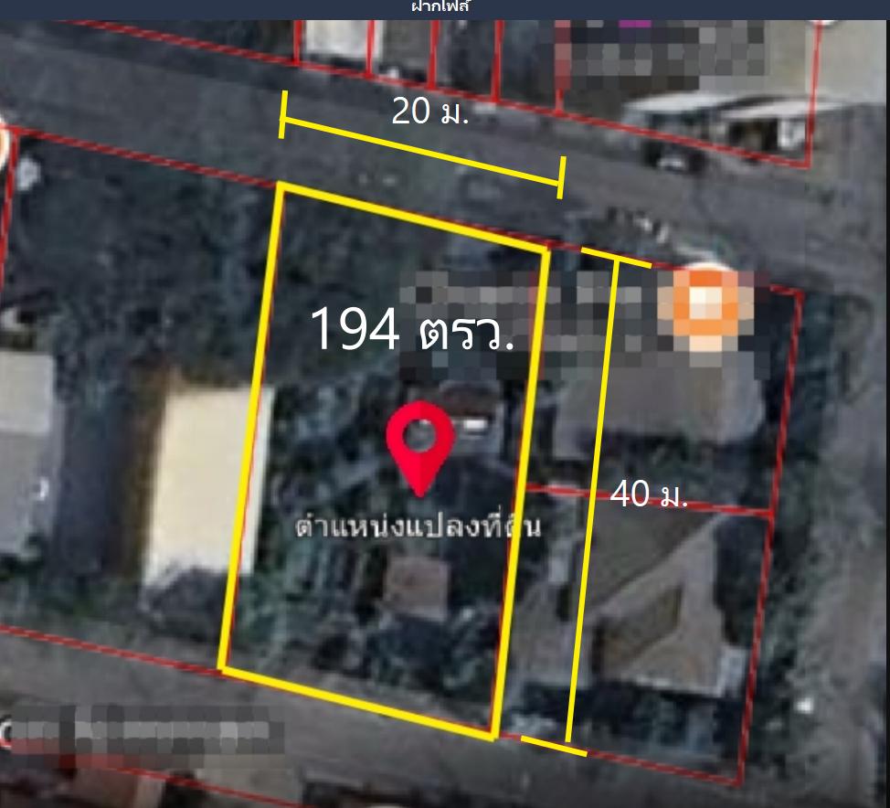 # พื้นที่เป็นรูปเหลี่ยมผืนผ้า ติดถนนซอย 2 ซอย หน้ากว้างติดถนน 20 เมตร ลึก 40 เมตร