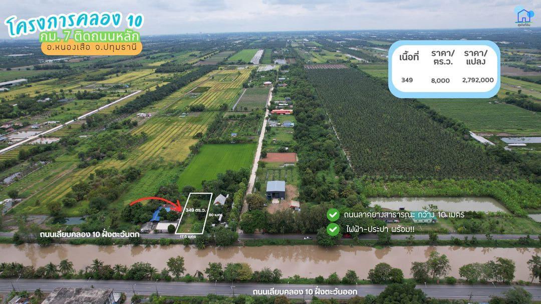 พามาชมที่ดินคลอง10 ซอยเทศบาล 11/4 อ.หนองเสือ จ.ปทุมธานี โครงการนี้ว่างเพียง 6 แปลงสุดท้าย ขนาดเนื้อที่เริ่มต้นแปลงละ 120 ตารางวา ปัจจุบันมีการพัฒนาถนนคอนกรีต ไฟฟ้า ประปา ผ่านหน้าแปลงสำหรับแปลง E6 และมีเพื่อนบ้านเข้ามาปลูกอาศัยหลายครัวเรือน ท่านใดสนใจสอบถามเพิ่มเติมได้ครับ