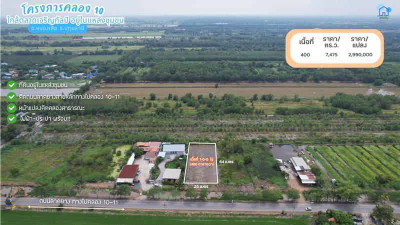 ที่ดินทำเลทอง คลอง 10 ปทุมธานี! ใกล้ตลาดเจริญกัลป์