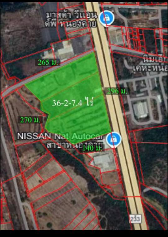 ทีดิน 36-2-7.0 ไร่ ติด ถ.มิตรภาพ ขาเข้าเมืองหนองคาย