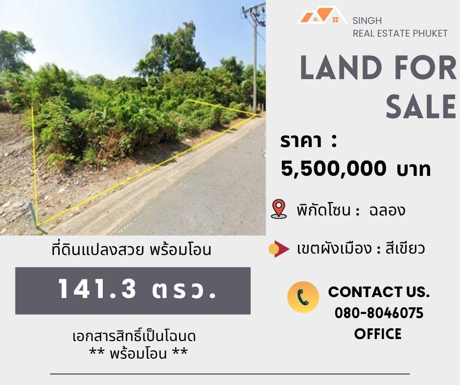 ** LAND FOR SALE ** ที่ดินแปลงเล็ก 141.3 ตรว. ( ซอยป่าหล่าย 2 - ฉลอง )