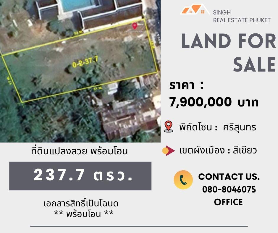 ** LAND FOR SALE ** ที่ดินแปลงเล็ก 237.7 ตรว. ( ซอยตาพรหม - เขาล้าน )