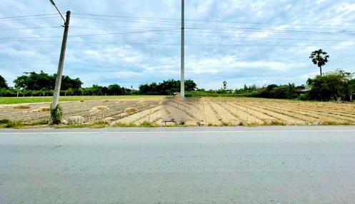 ที่ดินติดถนนลาดยาง หน้ากว้างด้านติดถนนประมาณ 67 เมตร ยาวประมาณ 210 เมตร ด้านหลังกว้างประมาณ 40 เมตร ปัจจุบันปลูกผัก ระดับของที่ดินต่ำกว่าถนนประมาณ 50 ซม.