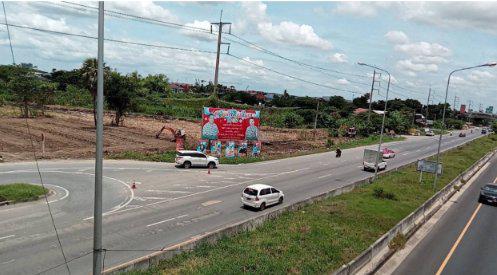 ที่ดินติดถนน 6 เลน ทางหลวงหมายเลข 345 หน้ากว้างด้านติดถนนประมาณ 113 เมตร ยาวประมาณ 107 เมตร ด้านหลังกว้างประมาณ 82 เมตร อยู่ตรงข้ามหมู่บ้านชัพฤก