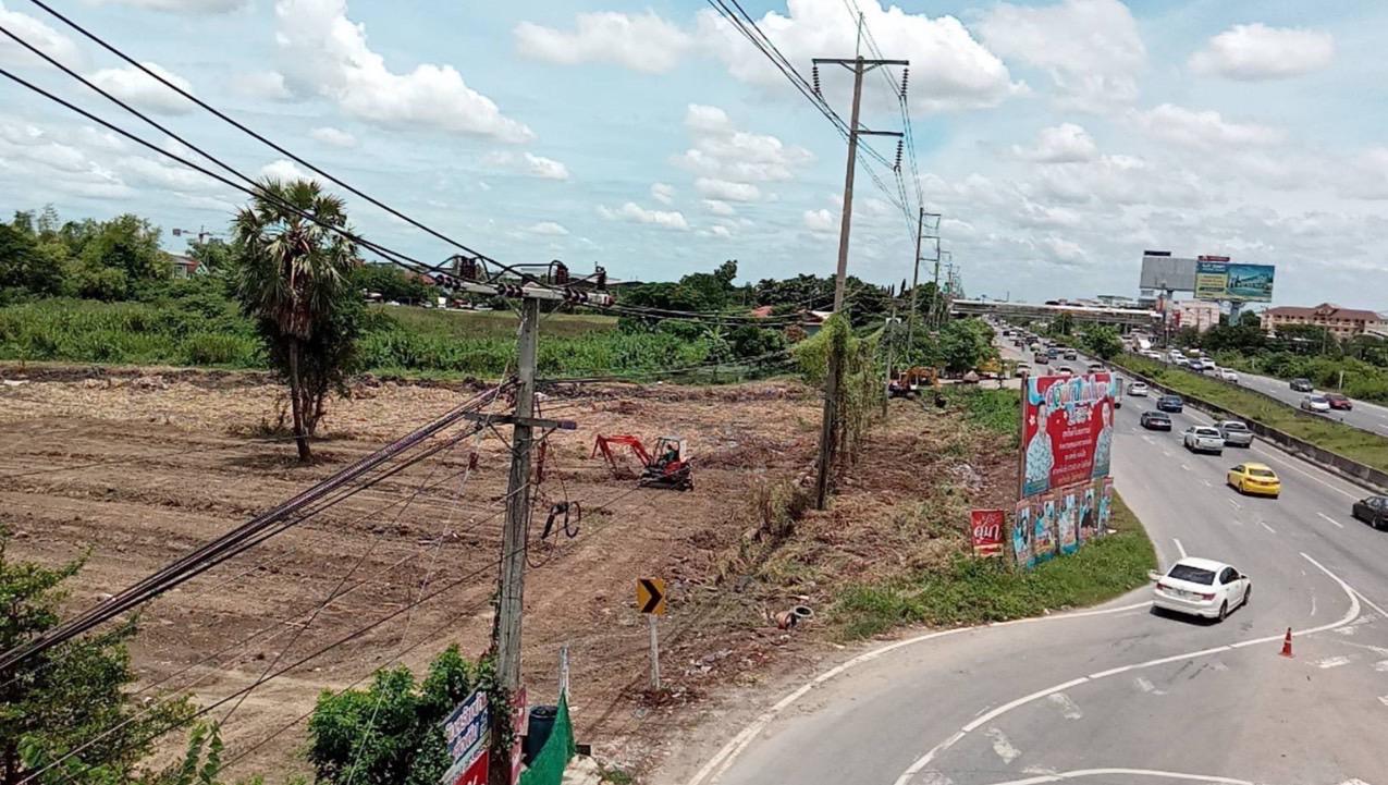 ที่ดินติดถนน 6 เลน ทางหลวงหมายเลข 345 หน้ากว้างด้านติดถนนประมาณ 113 เมตร ยาวประมาณ 107 เมตร ด้านหลังกว้างประมาณ 82 เมตร อยู่ตรงข้ามหมู่บ้านชัพฤก