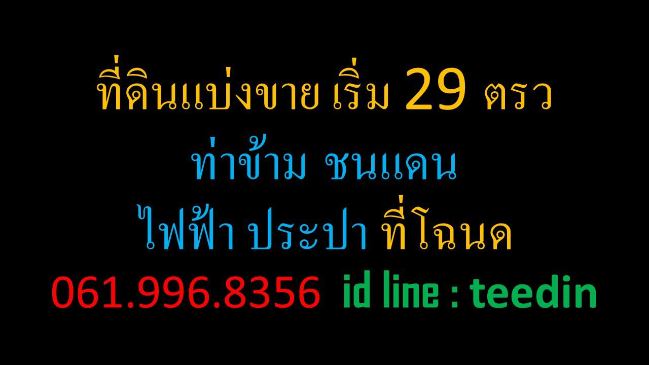 ที่ดินแบ่งขาย เริ่ม 29 ตรว ท่าข้าม ชนแดน ไฟฟ้า ประปา ที่โฉนด