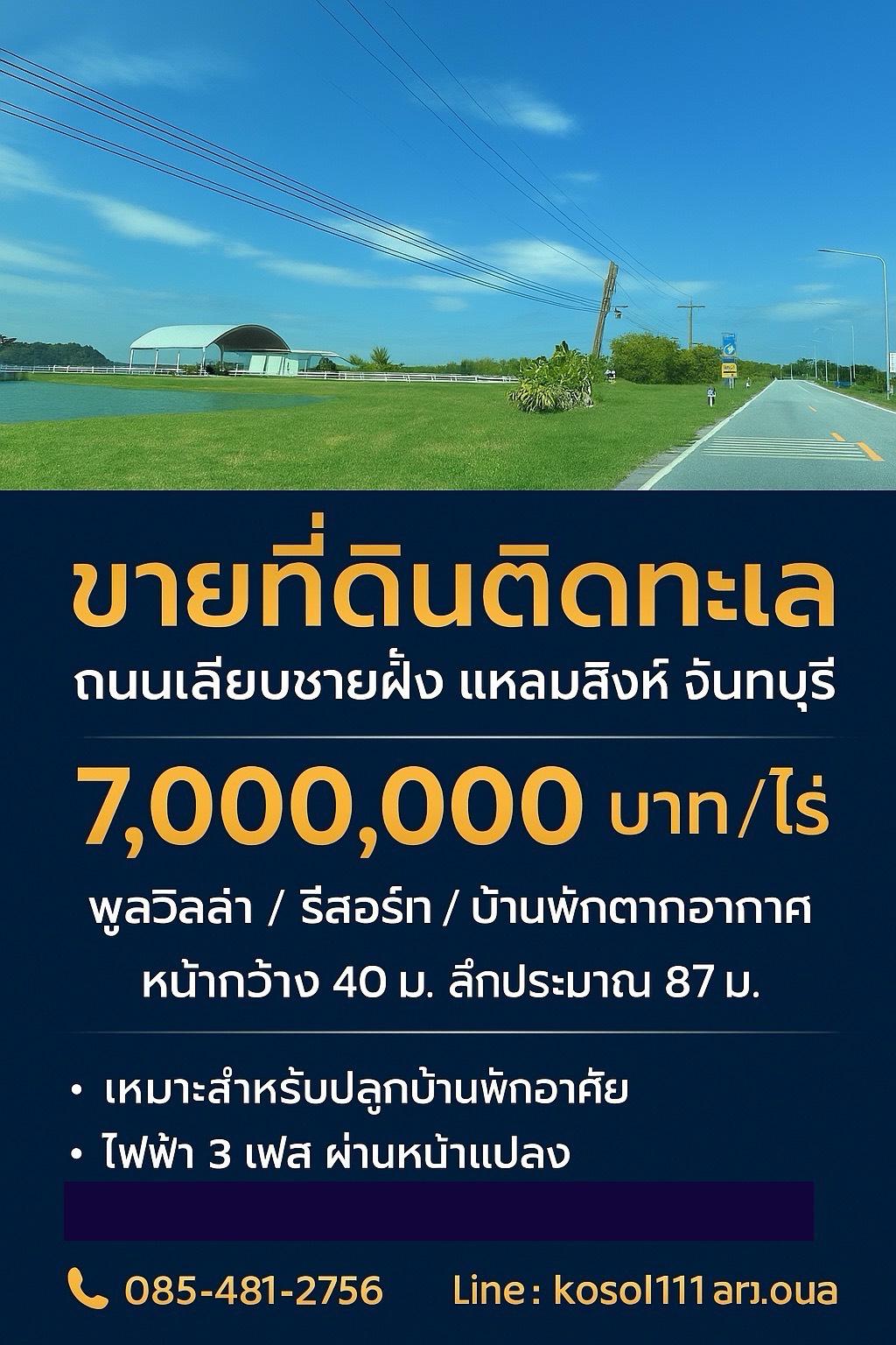 ขายที่ดินติดทะเล ถนนเลียบชายฝั่ง แหลมสิงห์ จันทบุรี
