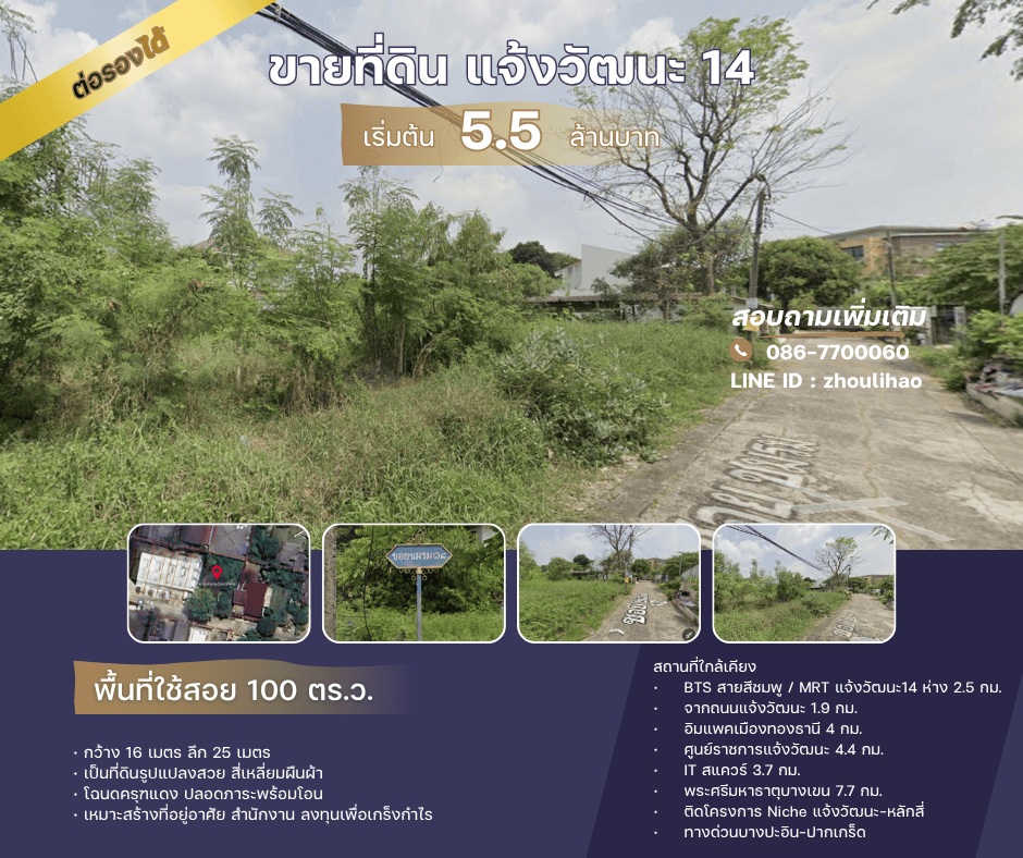 ขายที่ดินเปล่า ซ.แจ้งวัฒนะ 14 ใกล้ BTS / MRT ️