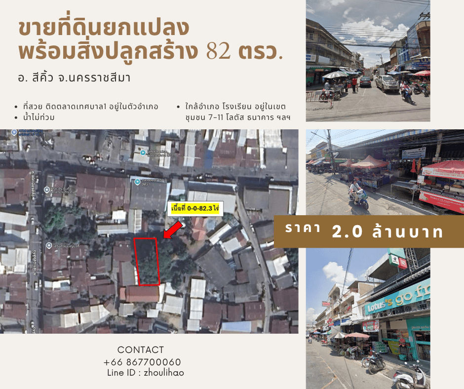 ขายที่ดินพร้อมสิ่งปลูกสร้างในตลาด อ.สีคิ้ว จ.นครราชสีมา