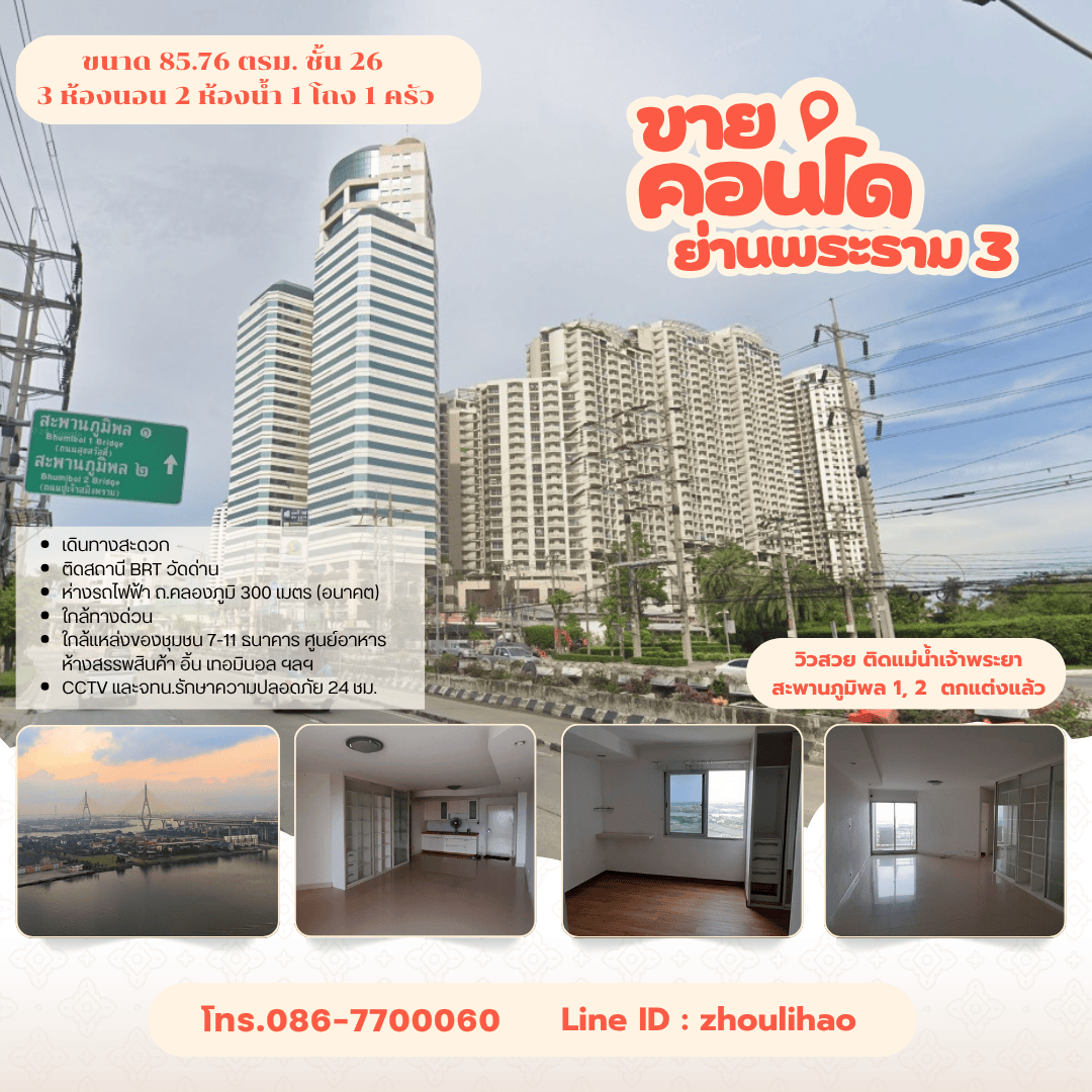 ขายคอนโดย่านพระราม 3 ตกแต่งเแล้ว วิวแม่น้ำเจ้าพระยา