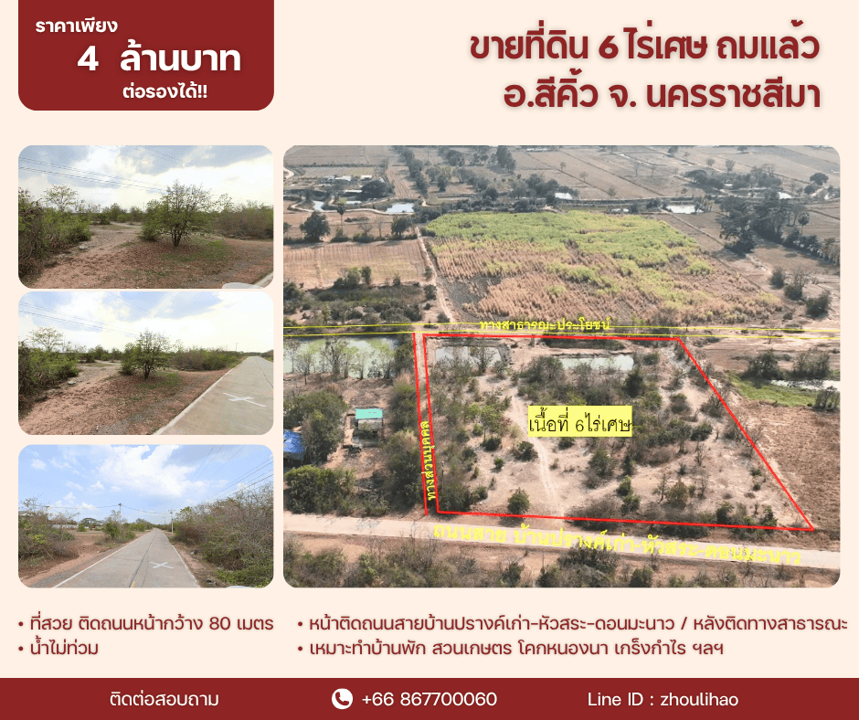 ขายที่ดิน 6 ไร่เศษ ถมแล้ว ️อ.สีคิ้ว จ. นครราชสีมา