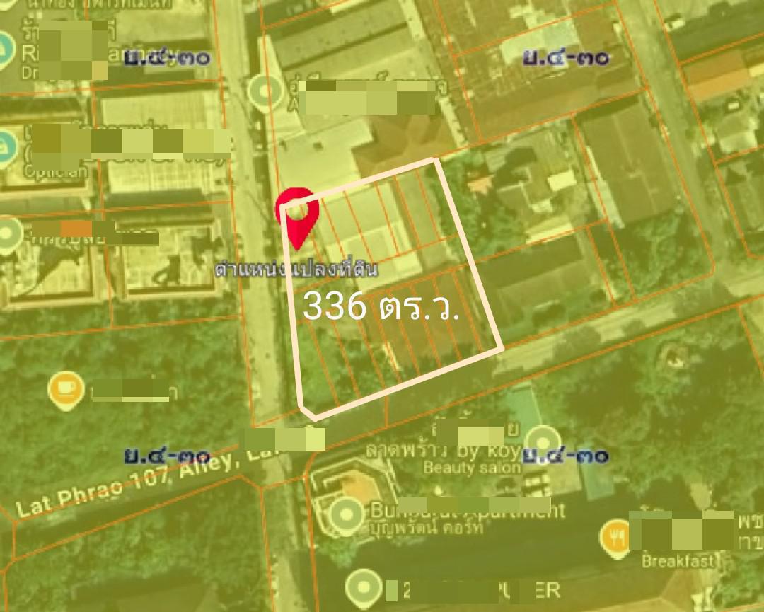 ขายที่ดินลาดพร้าว 107 มีบ้าน เนื้อที่รวม 336 ตร.ว. แปลงมุม ติดถนน 2 ด้าน ใกล้รถไฟฟ้าลาดพร้าว 101