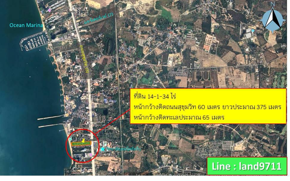ขายที่ดิน 14 ไร่เศษ ติดทะเล หาดบ้านอำเภอ และติดถนนสุขุมวิท