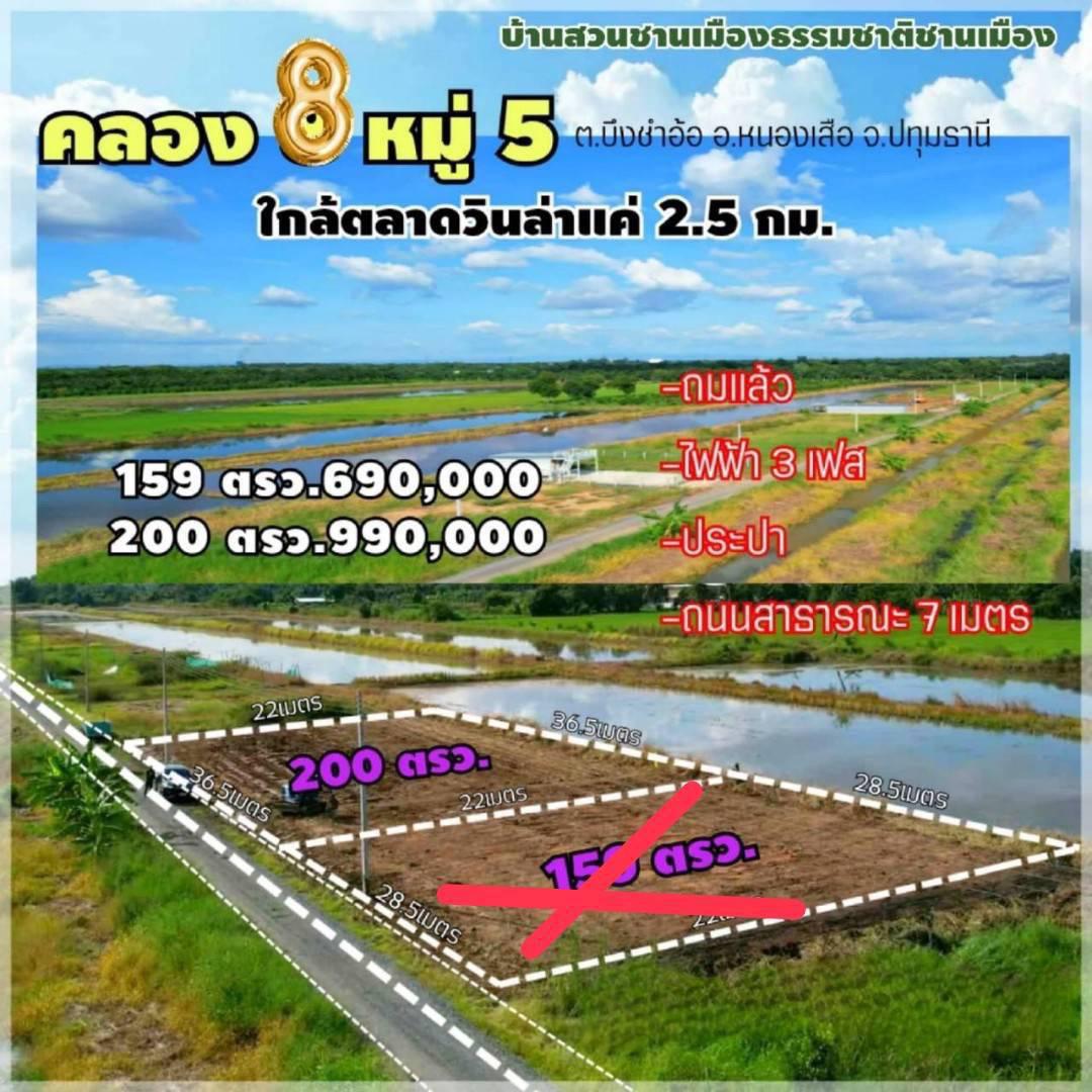 ร้อนเงินขายถูกค8บึงชำอ้อปทุมธานีตลาดวิลล่า2กม.ติดถนน7ม.ไฟฟ้า3เฟสน้ำพร้อม200ตรว990000เซเว่นซีเจต.หนองเสืออ.หนองเสือถมแล้ว