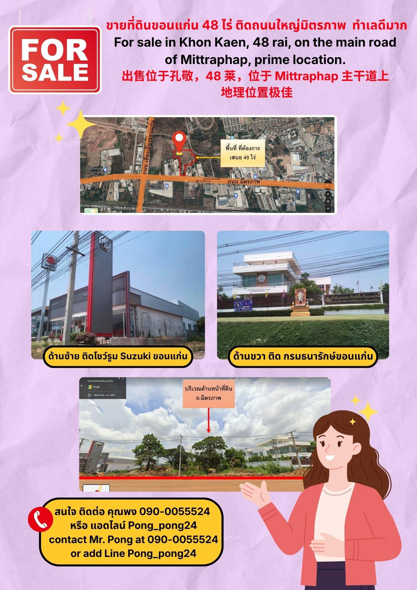 出售位于孔敬,48 莱,位于 Mittraphap 主干道上,80 米宽