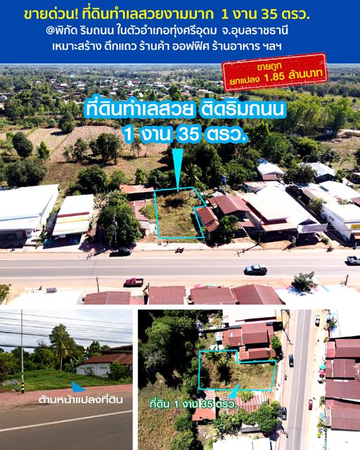 *** ปลอดภัยจากแผ่นดินไหว*** ใกล้นิคมอุตสาหกรรมแห่งใหม่ อุบลราชธานี ที่กำลังจะสร้างในปี 2568 ที่ดิน 135 ตารางวา สวยงามมาก ติดถนน อ.ทุ่งศรีอุดม ขายที่ดินภูเก็ตขายที่ดินขายที่ดินขายที่ดิน
