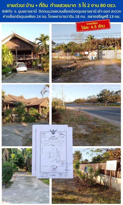 ขายที่ดินพร้อมบ้านสวย 5 ไร่ 2 งาน 80 ตรว. ***เขตปลอดภัยจากแผ่นดินไหว*** ทำเลสวยมาก ติดริมถนนวงแหวนเลี่ยงเมือง จ.อุบลราชธ