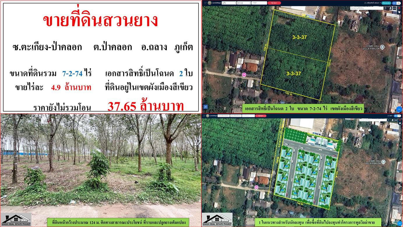 ขายที่ดินสวนยาง ขนาด 7-2-74 ไร่ ซ.ตะเกียง-ป่าคลอก ต.ป่าคลอก อ.ถลาง ภูเก็ต
