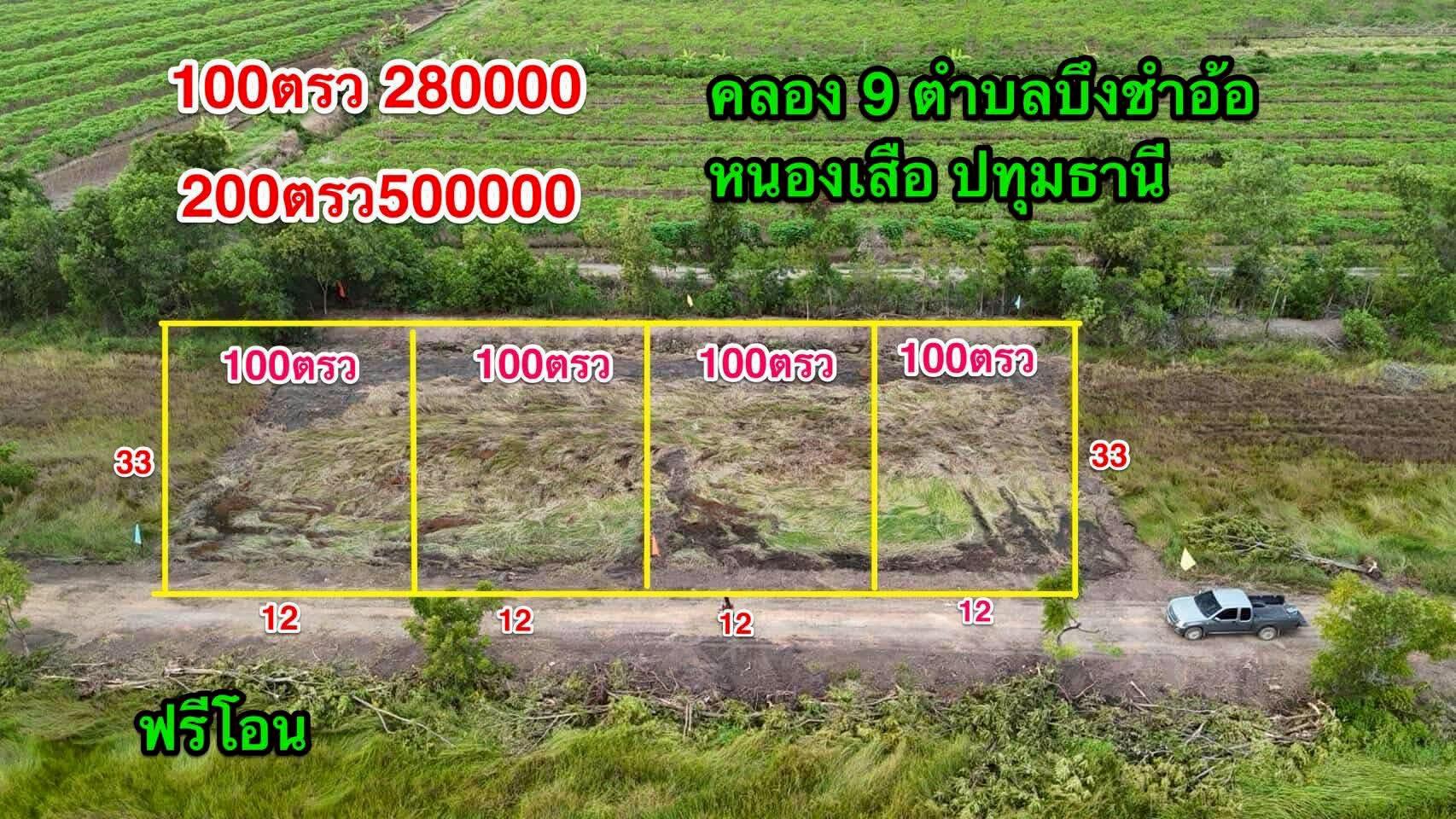 ที่ดินคลอง9 ตำบลบึงชำอ้อ อำเภอ หนองเสือ ปทุมธานี เนื้อที่ 100;ตารางวา 280,000 บาทเนื้อที่ 200ตารางวา 500,000 บาท