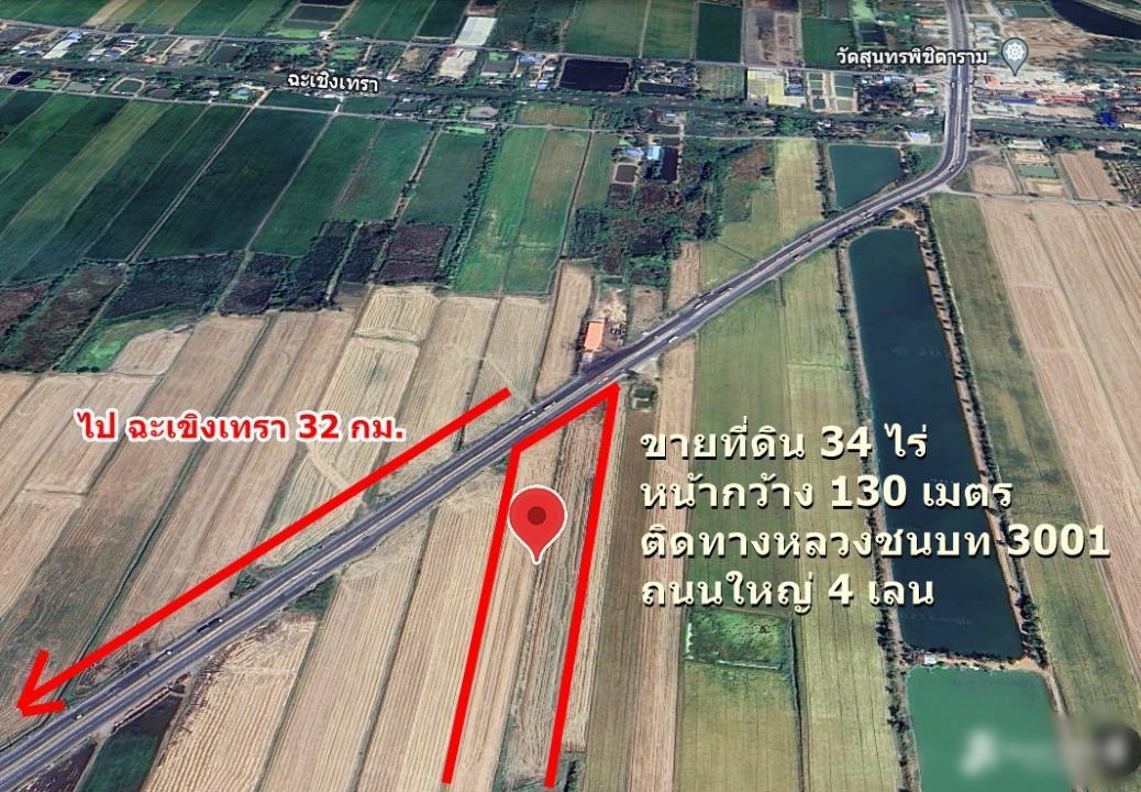 ขายที่ดินราคาถูก เกือบเท่าราคาประเมิน 34 ไร่เศษ ติดทางหลวงชนบท 3001 องครักษ์-บางน้ำเปรี้ยว ไร่ละ 1 ล้านบาทถ้วน